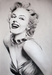 Portret van Marilyn Monroe, gemaakt in grafiet en monolith op papier.