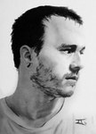 2013Portret van een jongen gemaakt met conte potlood op papier. De jongen heeft een wijnvlek die ik heel licht heb aangezet en subtiel heb verwerkt in het werk.