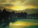 2015Schilderij van iemand die op zee op een surfplank staat (golf surfen). geschilderd in acryl op doek.