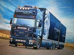 2013Schilderij van een bloemen vrachtauto op zonnige achtergrond